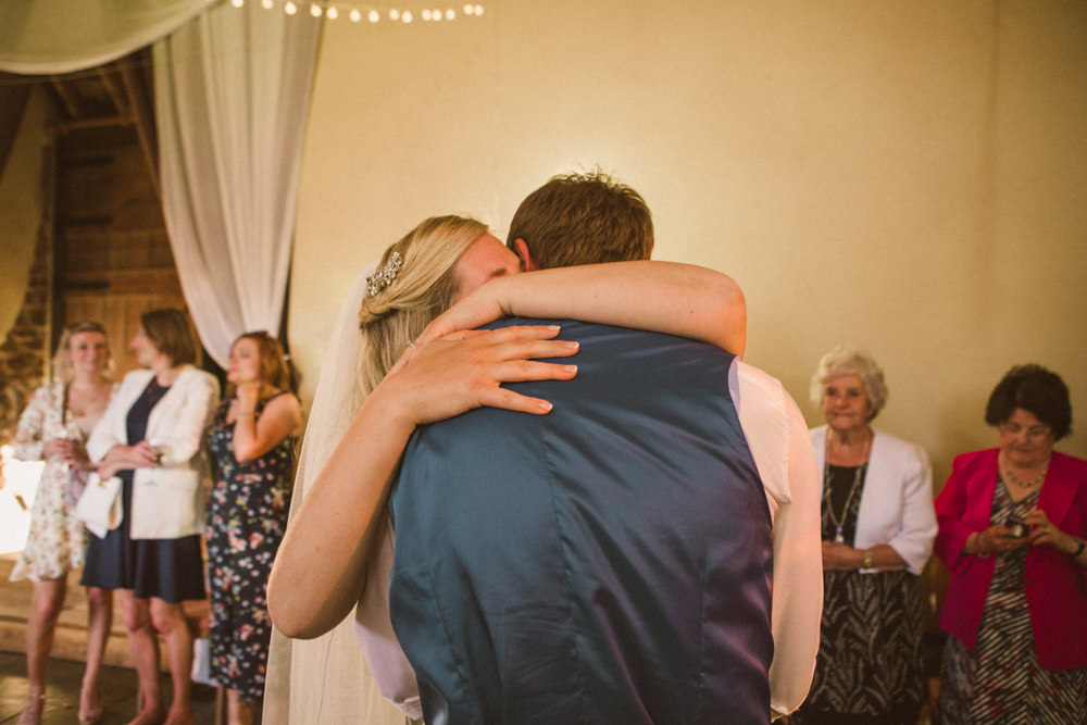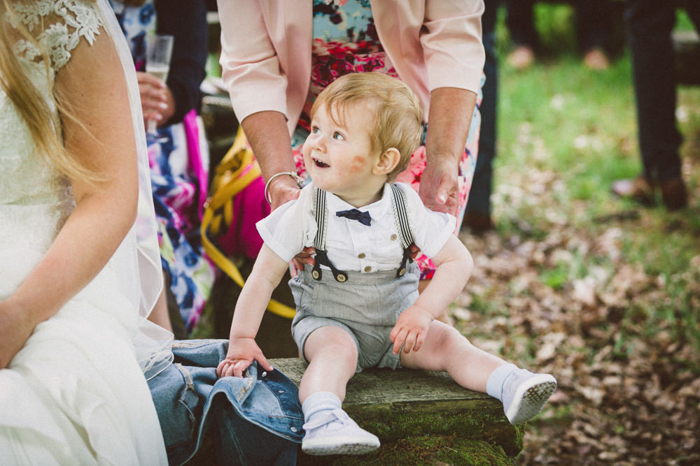 Breaking tradition, the wedding party took to the woods for speeches shortly after the couple were wed in the old Cider Barn. After a short trek, the champagne was poured and guests got comfortable around the beautiful ceremonial tree. Lewi looked super-cute here with a lipstick kiss on his cheek! The speeches were touching & emotional, with so much love from everyone and tears shed for the happy couple.